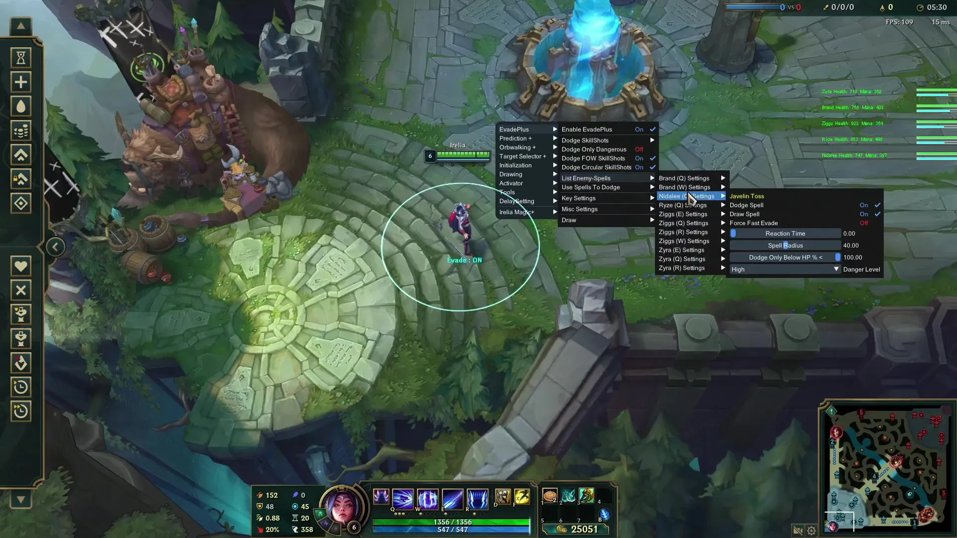 Evade Plus analyzes enemy skill trajectories and helps automatically dodge skillshots, maintaining your position and health in team fights.